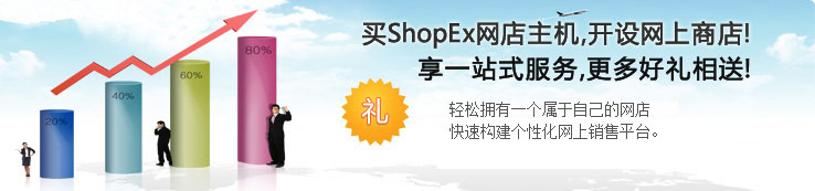 ShopEx网店主机是我司做为国内著名网店系统开发商ShopEx金牌合作伙伴向广大电子商务客户推出的新一代网店系统。使您轻松拥有一个属于自己的网店。帮助企业及个人为开展电子商务而快速构建个性化网上销售平台。